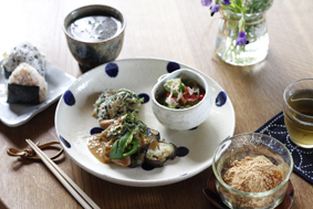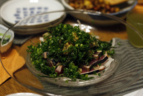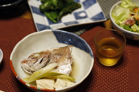 なます。サラダ、お手製の水餃子、ひじきの煮物、鶏とオクラのフライなどなど。