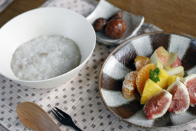 この日は朝からごぼうのスープとフルーツと栄養満天!