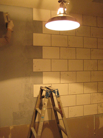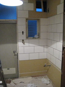 オットーがタイルの細々やってる間、数字間にわたり壁紙をはがしました。