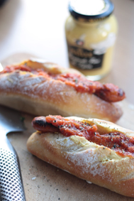 先週は自家製バケットにチョリソーソーセージをはさんで。