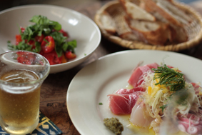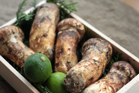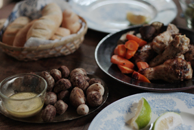 チキンのスパイスグリルと、里芋の柚子胡椒バター。