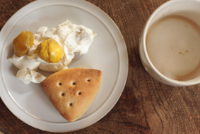 日曜日はクリームに甘露煮ちゃんをごろごろ混ぜてパンにつけて食べました。