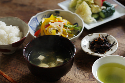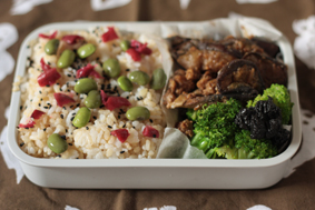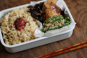 この日は、茄子の豚味噌いため、ブロッコリーの黒胡麻掛け、玄米ごはんです。