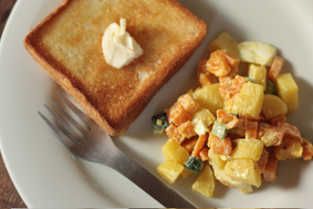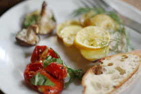 先週送ってきたミニトマトは天日で干して、オイルに漬け込んどいたのをマフィンに乗っけてたべました。