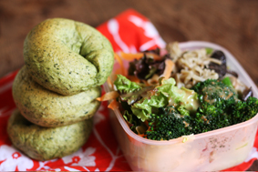たっぷりサラダとほうれん草のベーグル。