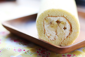 メイプルのペーストをシートにしてパンに折込ました。