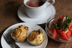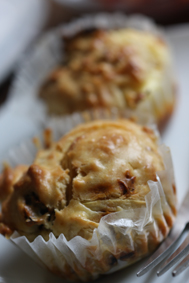 玉ねぎ、クリームチーズ、ドライトマトのお食事系マフィン。