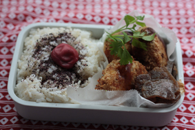 残りもんというと言葉わるいけど。あえてお弁当に残したんだから、残りもんじゃないというテイで。