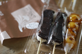 この間お向かいさんに買いにいった団子屋さんのもの。